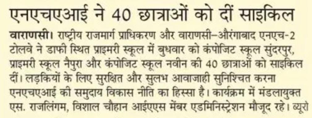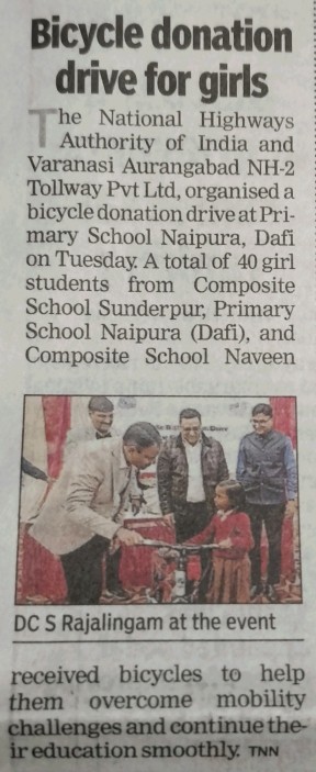 एनएचएआई और वाराणसी-औरंगाबाद एनएच-2 टोलवे ने छात्राओं को 40 साइकिलें प्रदान कीं