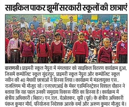 वाराणसी में NHAI और VAH ने जरूरतमंद व योग्य छात्राओं को 40 साइकिलें वितरित की।