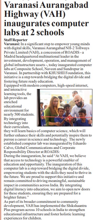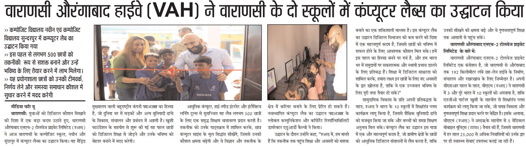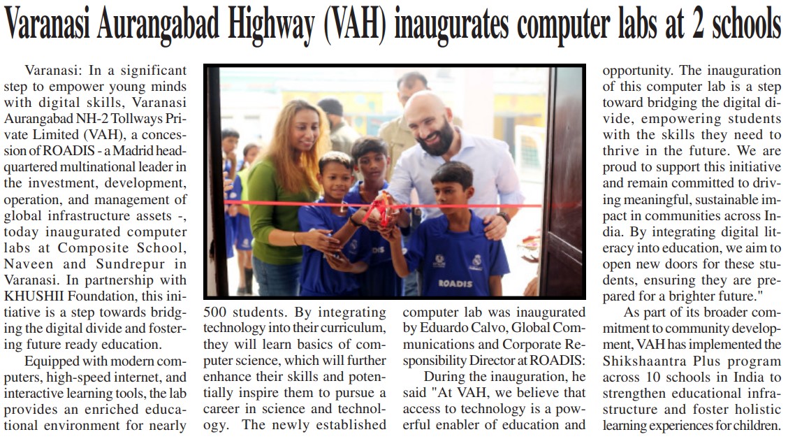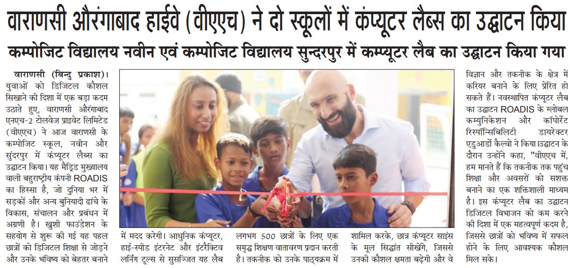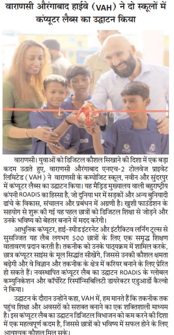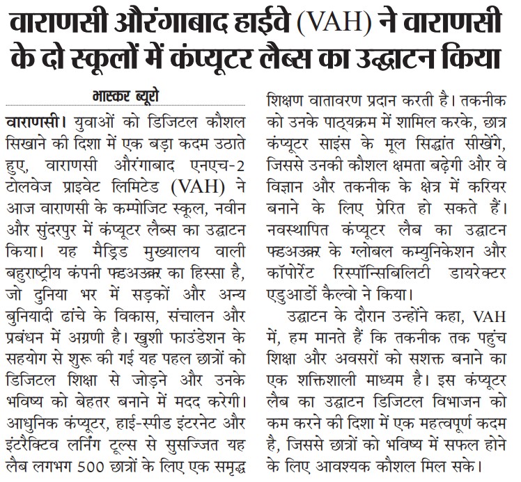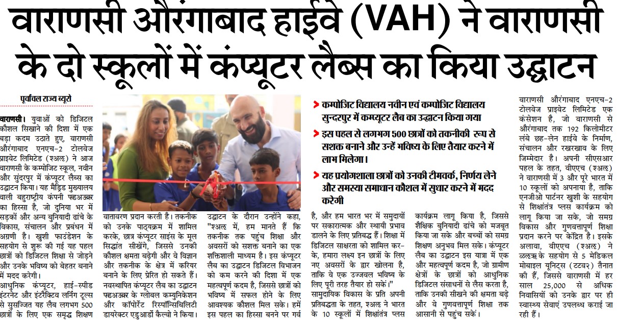 वाराणसी औरंगाबाद हाईवे (VAH) ने वाराणसी के दो स्कूलों में कंप्यूटर लैब्स का किया उद्घाटन