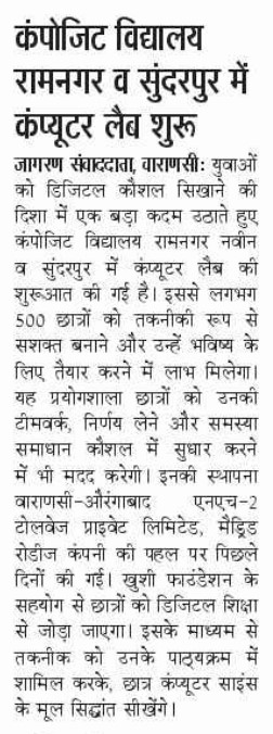 कंपोजिट विद्यालय रामनगर व सुंदरपुर में कंप्यूटर लैब शुरू