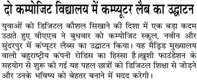 वाराणसी औरंगाबाद हाईवे (वीएएच) ने दो स्कूलों में कंप्यूटर लैब्स का उद्घाटन किया
