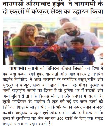 वाराणसी औरंगाबाद हाईवे ने वाराणसी के दो स्कूलों में कंप्यूटर लैब्स का उद्घाटन किया